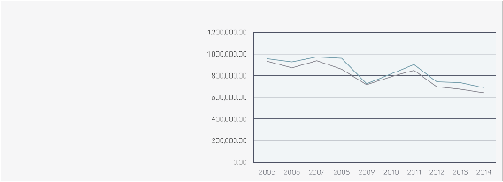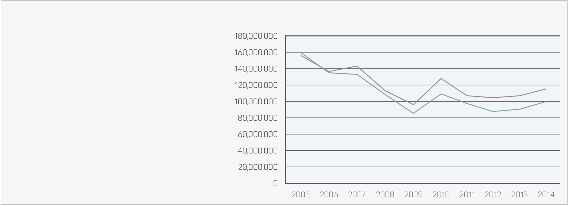 The graphs below clearly indicate a gradual decline over the last ten years of the volume of rough as well as polished imports and exports, punctuated by a sharp decline in 2008-9 when the industry as a whole experienced a downturn. Significantly, we note an equally steady increase in the value of imports and exports of rough as well as polished diamonds, with the exception of the same period between 2008-9. Considered together, these indicate consistent appreciation of the value/ct. ratio.