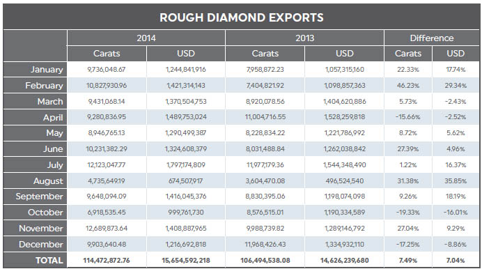 ROUGH DIAMOND EXPORTS (USD) 2013 | 2014
