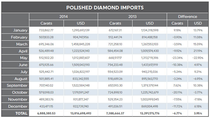 POLISHED DIAMOND IMPORTS (Carats) 2013 | 2014