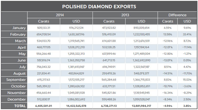 POLISHED DIAMOND EXPORTS (Carats) 2013 | 2014