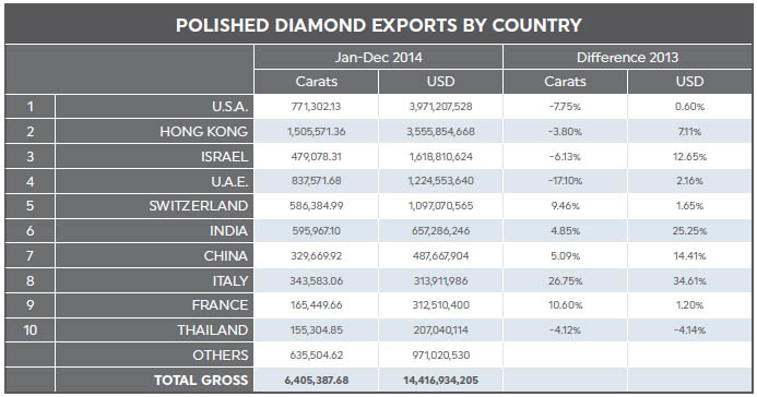 POLISHED DIAMOND EXPORTS (USD) 2013 | 2014