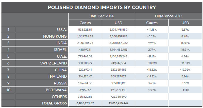 POLISHED DIAMOND IMPORTS (USD) 2013 | 2014